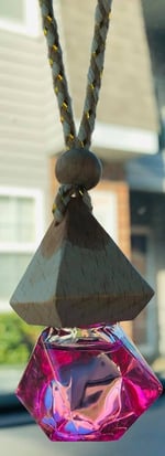 This cute air freshener can be hung anywhere you would like. Just remove the plug under tho top, tip until the wood covered (inside to out). All the bases are glass with Wooden tops. Enjoy your choice of scent! please put scent of choice in the notes.